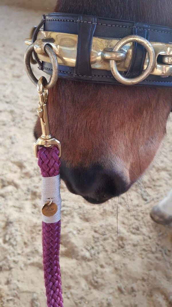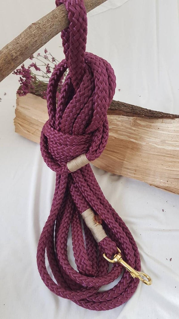 Ausführung hier: Aubergine mit beiger Wicklung und goldenen Karabiner.